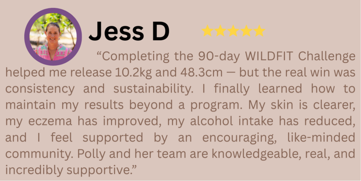 I’ve trained extensively in mindset and personal growth, and I bring that depth into every WildFit challenge — not as theory, but as lived experience as a business owner, wife, mum, and woman who rebuilt her life from the inside out.